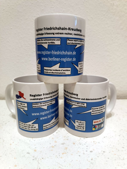 Inhalt: Beschreibung, Überkleber (A5+A6), Marker schwarz, Lösungsmittel, Kratzer, Schaber, Tuch, Schwamm, Handschuhe, Klebezettel zum Notieren der gefundenen Propaganda (Datum, Fundort, Beschreibung oder ggf. Foto) zur Weiterleitung an das Register, Visitenkarte mit Kontaktdaten